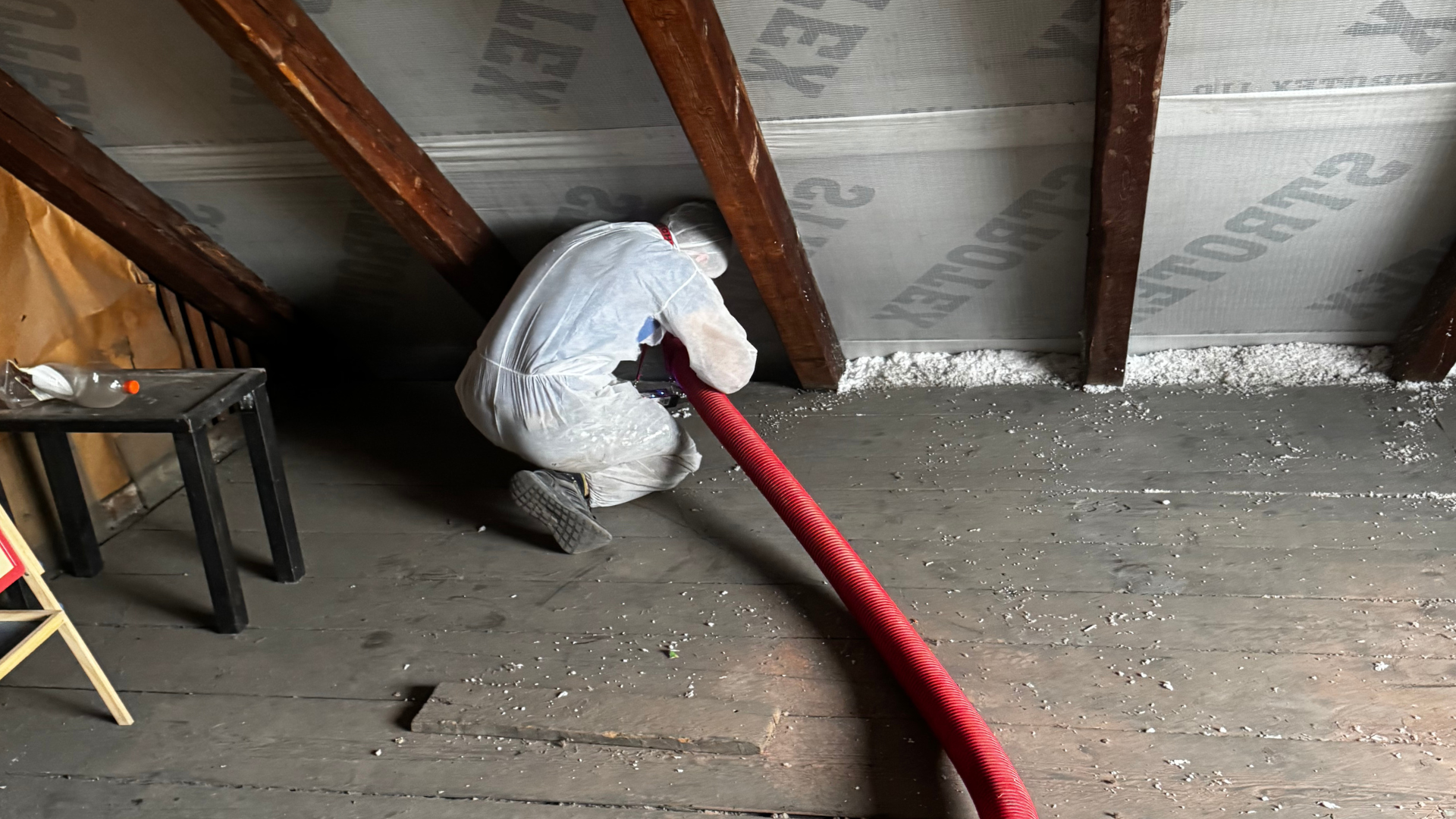 WOJANÓW - zadmuch poddasza użytkowego drewnianego domu - CELULOZA